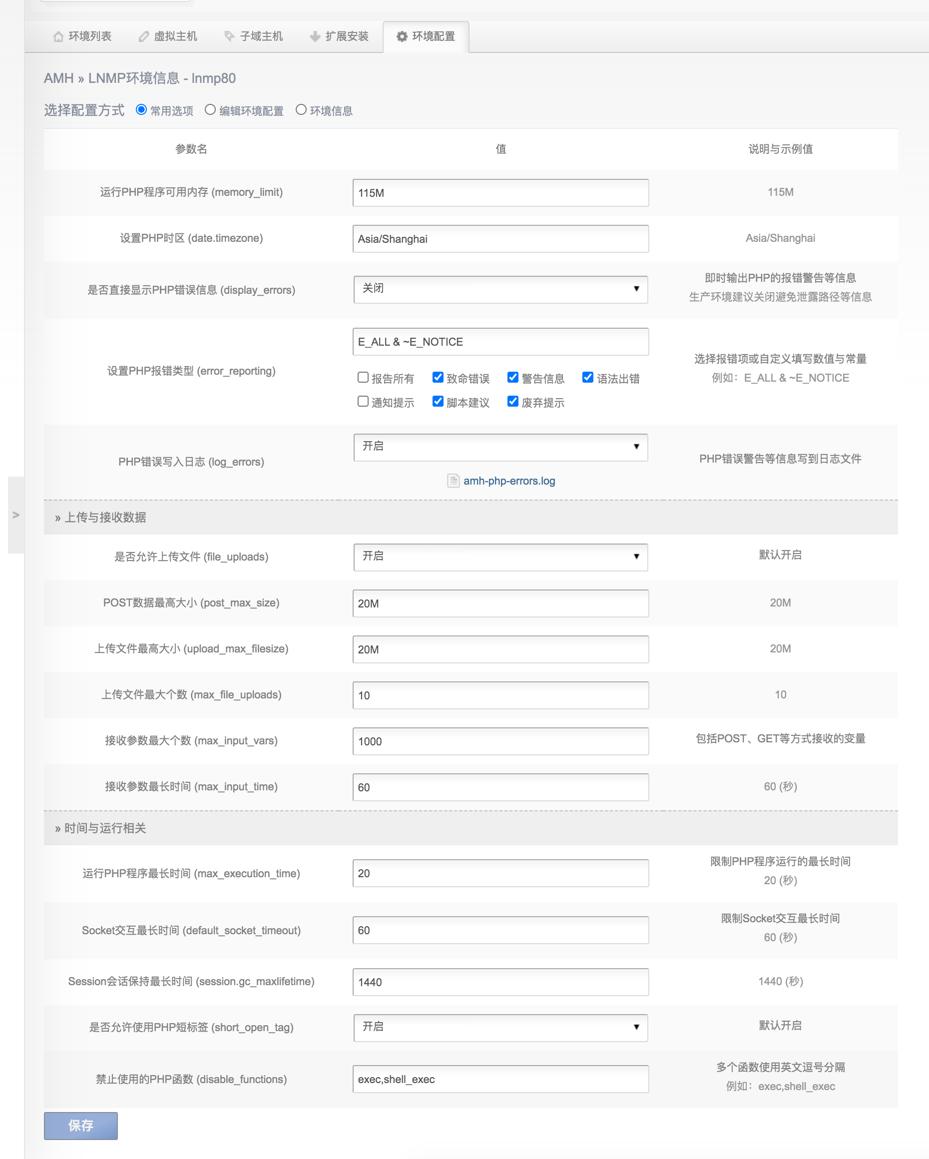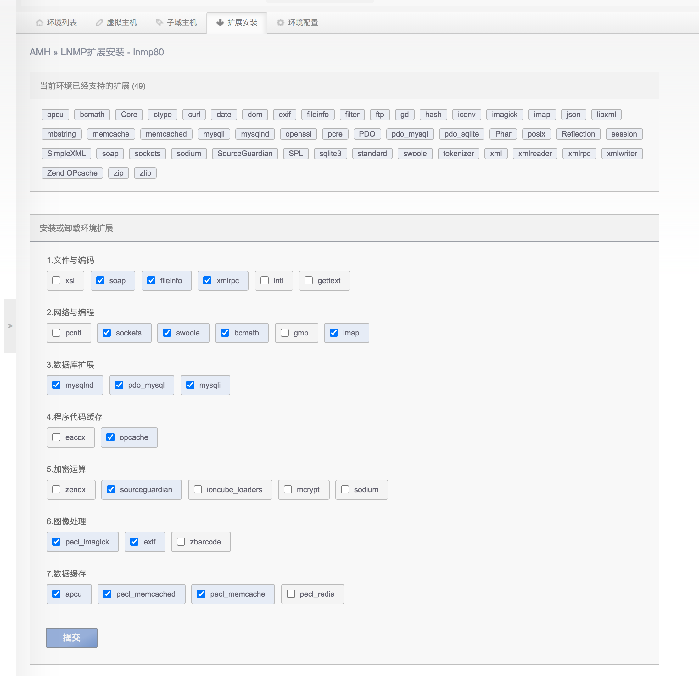 包括环境扩展的一键安装与卸载、环境软件版本更换、环境配置等等很多优化。 另外,需绑定子目录(如public)运行的网站程序,直接添加子域主机即可。不用再另外创建虚拟主机了。 其它具体更新细节可查阅: https://amh.sh/bbs/post-10916-1-1.htm 附件文件 1. lnmp-3.5-环境配置.png (480.73 KB) 2. lnmp-3.5-环境扩展管理.png (397.83 KB) 3. lnmp-3.5-环境列表.png (340.01 KB)