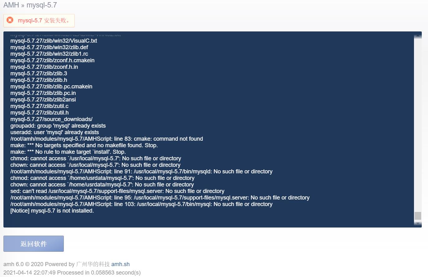 mysql-5.7 安装失败。