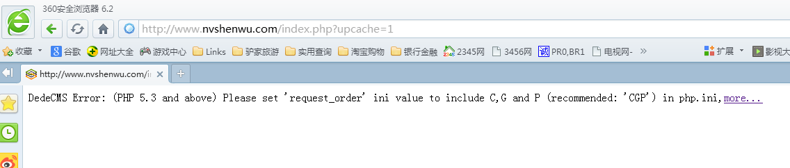 这是DEDE需要,/etc/php.ini 配置文件 request_order = "GP" 改成 request_order = "CGP" 然后重启PHP、或重启面板。