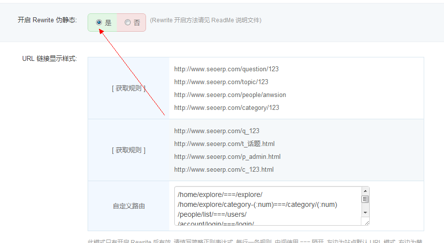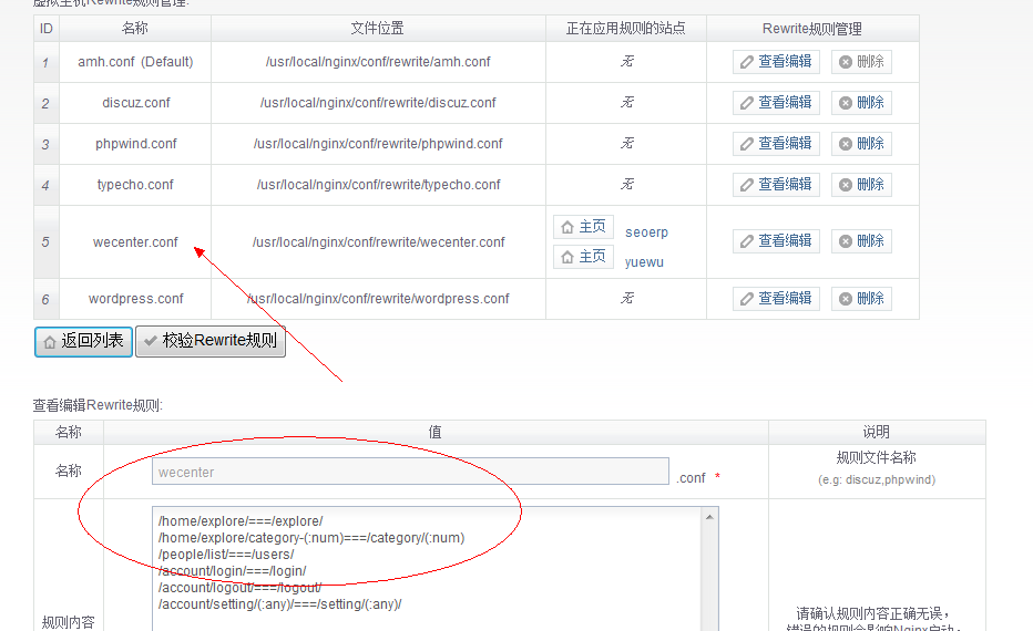 ![]() 我把对方的URL改写规则添加到这边了,新建了一个文件。 然后进网站后台启动 ![]() 发现网站无法生效URL改写功能