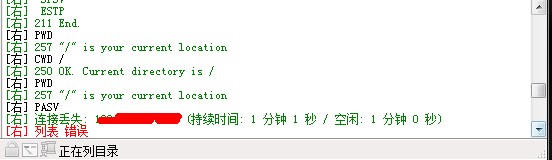切换为主动模式后还是有问题 [R] 257 "/" is your current location [R] 侦听于端口: 52940,正在等候连接。 [R] PORT 192,168,1,104,206,204 [R] 200 PORT command successful [R] MLSD [R] 425 Could not open data connection to port 24157: Connection timed out [R] 列表 错误