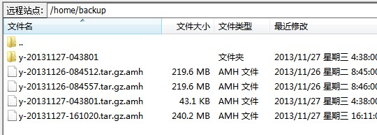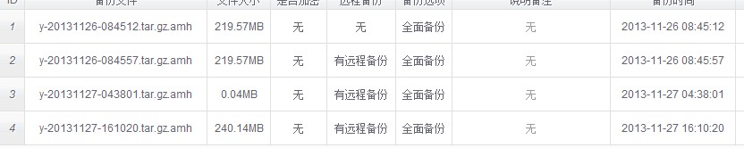 amh backup [n/Y/y 远程备份] [y/N/n 备份选项] [密码/n] [备注]