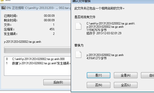 用7z提取 都出错 备份到163和qq的都是 一共10个分卷