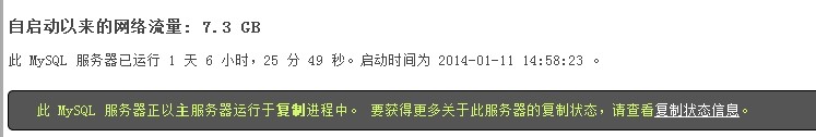 有以下提示 ”此 MySQL 服务器正以主服务器运行于复制进程中“、 用AMH 一天后 今天上线查看 mysql 的流量统计等。 就发现这个提示了。。。 而且 数据经常性 变为 ”使用中“ 不知道如何解决 或者 有这个提示 是否有什么问题? 查了好多资料没理解什么概念。。。 望帮忙~ 谢谢啊。。。