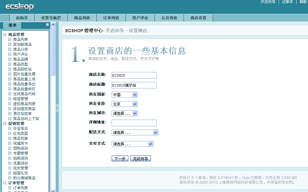 ----------------------------------------- ![]() 2、SSH或FTP更改需可写文件&目录。 ----------------------------------------- ![]() 3、ECShop 安装完成。 ----------------------------------------- ![]() ECShop 管理后台。 ----------------------------------------- ![]() ECShop 程序首页 ----------------------------------------- ![]()
