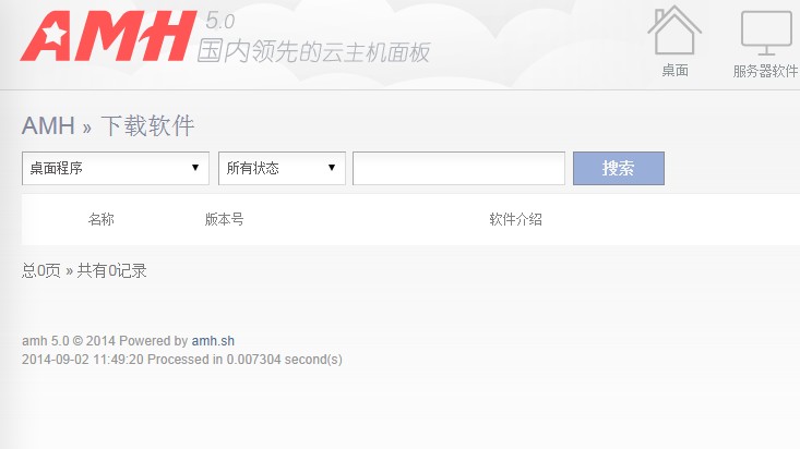 Ubuntu 12.04 64位, 本来装有 AMH 4.2, 用官方脚本删除了 4.2之后。 安装的5.0, 然后安装后正常登陆,授权也正常授权了。但下载软件的界面,为空? 请问是怎么回事? 需要重装操作系统后,安装吗? (使用Chrome浏览器) ![]()