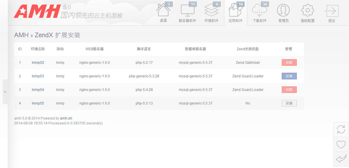 模块分类:应用软件 模块类别:环境扩展程序 版本号:1.0 zendx-1.0介绍 引用: zendx 是集成 Zend 所有版本支持的AMH模块,支持Zend Optimizer、Zend Guard Loader自动匹配安装。Zend不仅可以实现对PHP应用的脚本进行加密保护和对PHP应用的产品进行商业许可证管理,还可以为许多软件生产商、IT服务提供商提供完善的加密和安全的产品发布系统。 发布时间:2014-09-08 模块功能: 1) 支持Zend目前发布的所有版本。包括Zend Optimizer、Zend Guard Loader。 2) 支持除5.5之外的所有PHP环境。 目前模块已上架。登录面板下载软件图标会有更新提示,下载安装即可使用。 zendx 扩展安装 AMH.png ![]() zendx-phpinfo2.png ![]() zendx-phpinfo.png