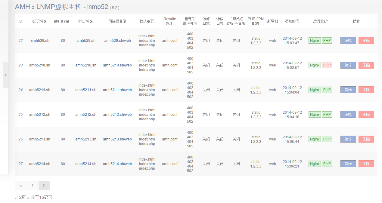 这个发布之前也有做过测试的。添加过几十个站点。 面板下面有执行时间。可以看下。 LNMP虚拟主机 AMH.png ![]() LNMP虚拟主机2 AMH.png