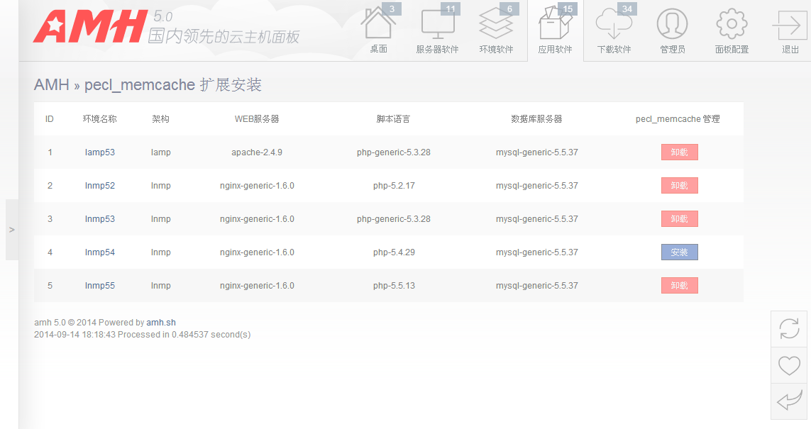 AMH 5.0 环境Memcached接口支持模块pecl_memcache-2.2.7发布。