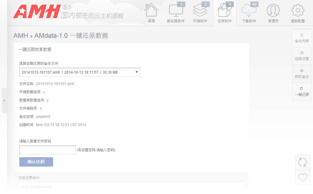 AMH 5.0 数据备份、还原恢复全能模块 amdata-1.0 发布。
