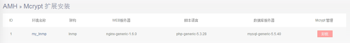 是的面板是一独立环境的与用户创建的环境分开的。 mcrypt-1.0 模块安装的是用户的环境。 面板的环境扩展目录是: /usr/local/amh-5.0/ext 需手动安装。 phpmyadmin 的mcrypt不安装也没关系。