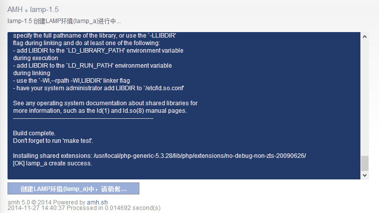 好像都创建好了,但是还一直显示:创建LAMP环境中,,,请稍后。。。