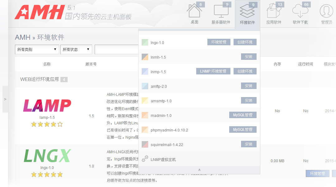 今年已经是2015年,AMH新版本开发计划都一一完成与实现,并顺利通过各项环境测试。 AMH 5.1版本是5.0的增强升级版本、在5.0之上做了很多细节优化与改进, 与进一步提高产品用户体验,建议安装使用。 AMH5.1 版本更新日志: 1、更新面板导航置顶显示。 2、增加模块软件安装、操作终止程序,用户可随时取消当前软件安装与操作进程。 3、增加模块操作菜单,用户在导航菜单可以快速安装、操作、升级软件模块。 4、更新amh控制器程序、避免系统授权验证的时间问题。 5、更新中文名字用户请求接口编码问题。 6、解决mysql个别系统存在软连接问题。 7、更新面板的下载模块分类logo引用脚本,官网中断情况显示模块默认标志。 8、更新改进面板环境配置。 9、更新面板环境Nginx配置。 10、更新使用https加密连接访问面板存在http请求的问题。 11、更新面板模块软件列表的排序方式,默认使用有序排列。 12、更新应用软件列表不分页问题。 13、增加用户收藏连接菜单。 14、更新面板所有脚本文件引地址,增加相应版本号避免升级应用到旧的缓存数据。 15、优化模块软件的命令窗口脚本,解决浏览器可能出现卡住的问题。 16、更新是否显示版块说明选项存在的问题。 17、更新面板配置选项提示状态问题。 18、增加模块菜单与用户自定义收藏菜单选项设置。 19、面板导航下载软件改名为软件下载。 20、更新面板管理员密码设置项,可以修改管理员用户名。 21、更新面板缓存刷新时会出现超时的问题。 22、更新面板CSRF提示页面。 23、增加安全提示说明页面。 24、更新面板模块软件源码效验程序,不区分判断MD5值的大小写。 25、更新模块logo本地需要刷新的问题。 26、增加软件下载分类子菜单,提供最新上架、下载排行项。 27、增加释放内存项,启动amh时释放。 28、解决cpu占用存在偏差问题。 29、优化桌面程序模块程序,刷新与删除操作时避免发移动桌面程序。 30、更新面板用户默认头像。 31、增加软件下载类目名称事件,点击可转到相应分类的软件列表。 32、更新面板端口更换程序,避免用户设置超过可用的端口号。 33、解决在任务计划执行不存在amh的软件命令出现循环提示选择问题。 34、解决下载模块软件源码出错影响判断MD5值的问题。 35、优化软件安装过程中存在状态不更新的问题。 36、优化面板模块软件升级程序,提供更好的软件升级机制,用户可直接快速升级、更新软件。 37、增加前端异步加载的响应事件调用。 38、优化模块软件安装、操作响应事件,软件状态即时刷新显示至面板菜单。 http://amh.sh/news.htm AMH 5.1安装 执行命令安装 wget http://amh.sh/amh.sh && bash amh.sh 2>&1 | tee amh.log 更多安装模式与帮助说明请查看:http://amh.sh/install.htm amh.sh 2015-03-02 AMH-5.1.jpg ![]() AMH-5.1-桌面.jpg