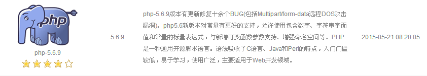 模块分类:服务器软件 模块类别:脚本语言 版本号:5.6.9 php-5.6.4 介绍 引用: php-5.6.9版本有更新修复十余个BUG(包括Multipart/form-data远程DOS攻击漏洞)。php5.6新版本对常量有更好的支持,允许使用包含数字、字符串字面值和常量的标量表达式,与新增可变函数参数支持、增强命名空间等。PHP是一种通用开源脚本语言。语法吸收了C语言、Java和Perl的特点,入门门槛较低,易于学习,使用广泛,主要适用于Web开发领域。 发布时间:2015-05-21 关于php-5.6.9 PHP-5.6.9 当前php5.6最新版本。 PHP-5.6.9版本有更新修复十余个BUG(包括Multipart/form-data远程DOS攻击漏洞)。 php-5.6.9 - amh.png