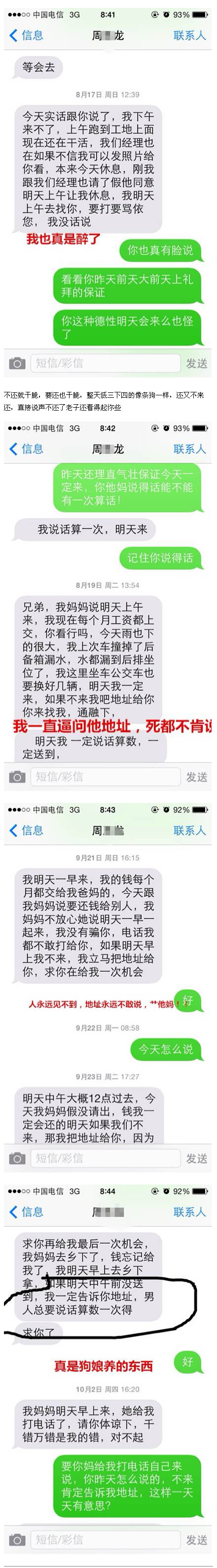 龙哥欠我500元欠了10个月,吹了80多个借口