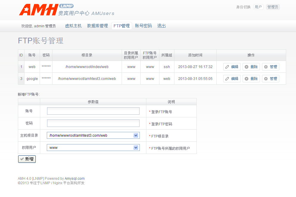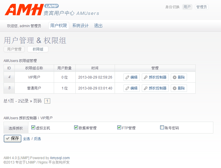AMH面板多用户管理模块 AMUsers-1.0 演示与测试版本