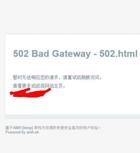 哎,明显是AMH自身的问题!我也遇到好多次了!LNMP遇到两次,一次抽风几天,经常502,过几天就好了。今天又遇到这问题了!