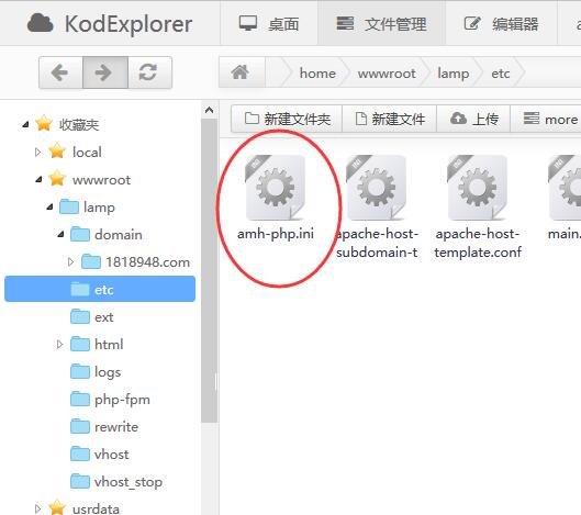 /home/wwwroot/你的环境名称/etc/amh-php.ini