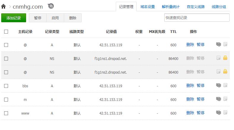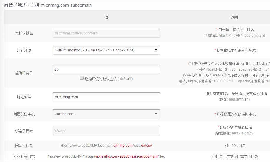 ![]() 同时也增加了子域主机,绑定m.cnmhg.com域名到e/wap目录下: ![]() 在dnspod上也把域名给绑定了: ![]() 在帝国cms后台也打开了wap访问: ![]() 但是访问m.cnmhg.com域名还是404错误,不知道是什么问题??