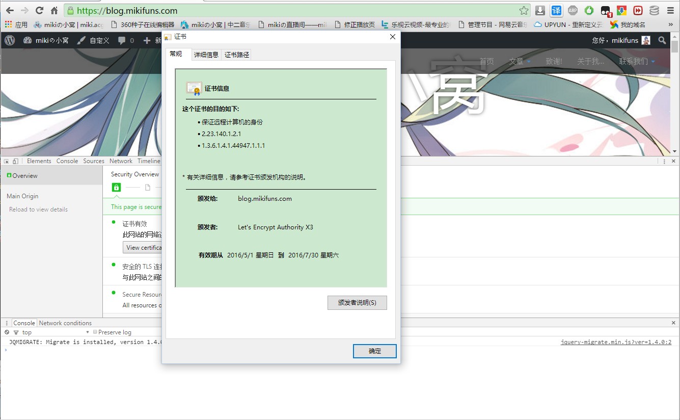 ![]() ps:实战地址:https://blog.mikifuns.com 大家可以看下真正的Let's Encrypt Authority X3证书安装在了amh面板上! 支持