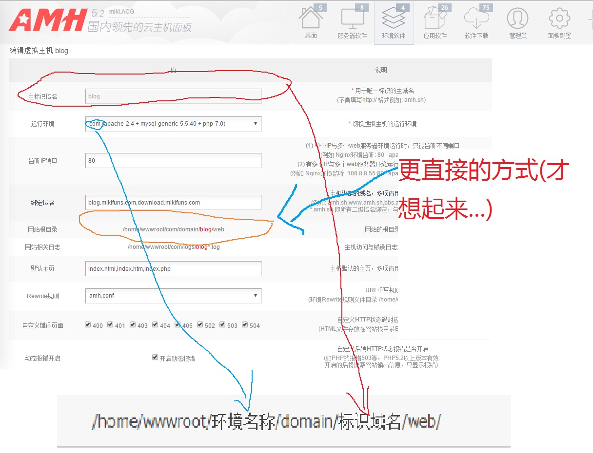 1,按照官方指引显示,一会我们会运行刚才保存的sh文件,所以咱们需要先编辑下. 打开letsencrypt.conf, 然后我们会看到这个: ACCOUNT_KEY="letsencrypt-account.key" *实战时可能略有出入,无太大变化.DOMAIN_KEY="example.com.key" DOMAIN_DIR="/var/www/example.com" DOMAINS="DNS:example.com,DNS:whatever.example.com" #ECC=TRUE #LIGHTTPD=TRUE 这里我们需要编辑的是DOMAIN_KEY DOMAIN_DIR 和 DOMAINS DOMAIN_KEY="你的博客名.com.key" 以本文为例:DOMAIN_KEY="blog.mikifuns.com.key" 懂了啥意思了吧~当然你还可以这么改:DOMAIN_KEY="blog.mikifuns.xyz.key" 或者DOMAIN_KEY="miki.blog.mikifuns.org.key" 总之就按照需求来设定咯~然后DOMAIN_DIR这里必须注意!这里输入的就要是之前你所记录的地址了.(要的是你网站存放的根目录路径) 我估计大家的地址都应该是这样的: /home/wwwroot/环境名称/domain/标识域名/web/ 啥?你没懂?你在看这图:![]() 懂了吧~复制过去就好了 支持 *标识域名/web 后面没有 / !也就是结尾要以web结束,不要打/上去!别问为啥... 支持我也不知道.... 接下来DOMAINS="DNS:example.com,DNS:whatever.example.com"这块的话按需定制了~ 例如你的这个证书要这些域名访问的时候能用:blog.mikifuns.com 的话,这里就这么写: DOMAINS="DNS:blog.mikifuns.com" 当然像我这样用二级的博客站长很少!!大多都是顶级域名直接上是不是!那么我们就这么弄:(还是以mikifuns.com和www.mikifuns.com为例)DOMAINS="DNS:mikifuns.com,DNS:www.mikifuns.com" 当然理论上支持更多的绑定(具体没试过,爱做死的可以试试)例如这样:DOMAINS="DNS:mikifuns.com,DNS:www.mikifuns.com,DNS:mikifuns.xyz,DNS:www.mikifuns.xyz,DNS:mikifuns.pw,DNS:www.mikifuns.pw(等等)" 发现规律了吧~每添加一个新绑定 的域名,你就需要在前面加上:,DNS: 嗯再不懂就还是去好好读书吧...最后两个注释可以看我给大家的技术文档,一般没用,所以略过. [hr] 下一层!实战安装证书!
