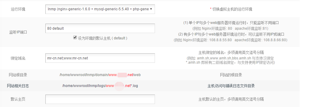 在环境中编辑主机时,如果在端口、绑定域名 一栏输入带分号的数据 如www.abc.com;abc.com 那么abc.com将会出现在下一个文本框中 就像我如果这么输入,然后保存。 ![]() 那么保存后就会变成这个样子 ![]() 是的,分号后面全部移位,往下面去了。所以下面的选项就全部移位(自定义错误页面、PHP-FPM都是空白,保存前有内容) 同时,PHP也会停止运行,此时访问网站显示403 ![]() 当然,这不是最坑爹的。将他内容全部改回去,把php&nginx全部重启,他还是不会好。 那怎么办呢?这时只能把网站的文件复制好了,然后删除主机(具体能不能行我也不清楚,我是直接删除环境再重建环境) 再重新添加主机才会好。 大问题倒是不大,可是很坑爹……我今晚已经因为这个问题,删除过两遍了:'( 或许是我操作方法不当,还请指教