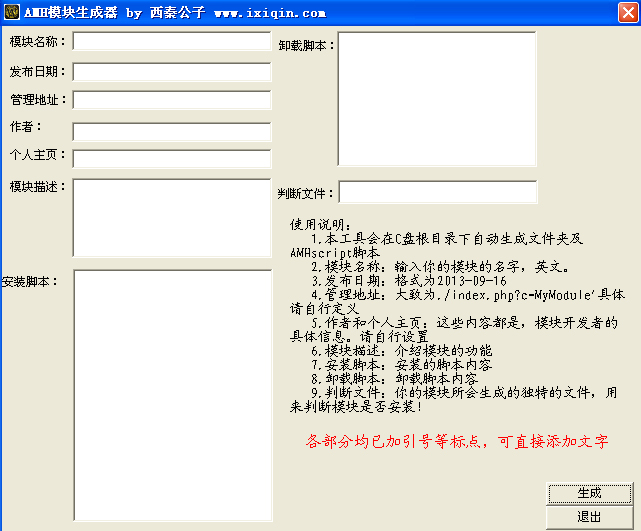 唔,做模块用的,更方便,填好相应信息,直接生成模块文件夹,可以直接打包上传。今天在网吧做的,没来及截图。