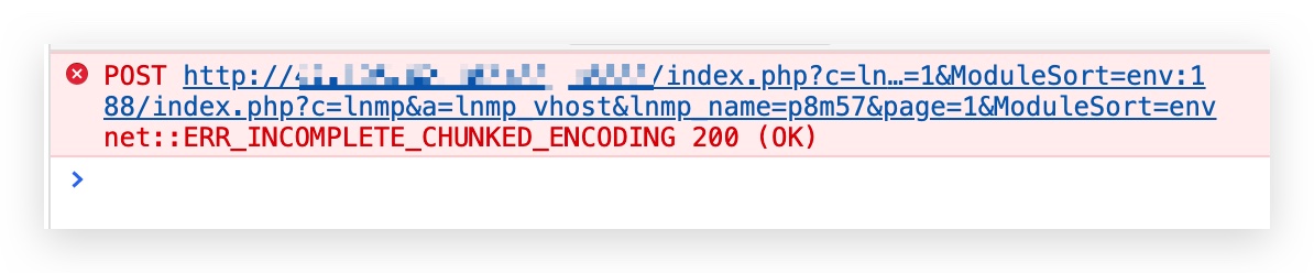 另外面板环境全部切换为nginx1.18 之后经常保存信息白屏,查看错误ERR_INCOMPLETE_CHUNKED_ENCODING 200
