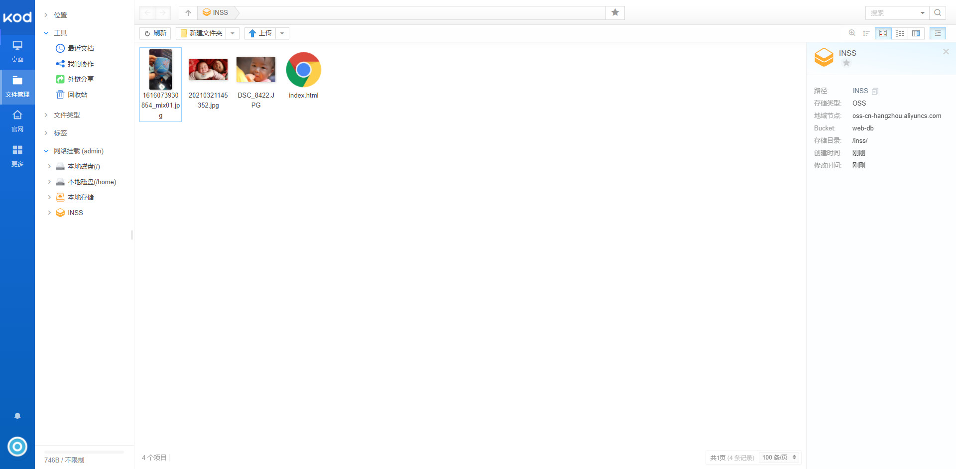 一直用了很久,但是目前可惜不能像Kodbox那样直接连接到OSS。 如果AMH这边能在应用中心上个阿里云的ossfs来的就方便多了,我一操作这些安装什么的的就头疼。 这样就可以挂在OSS到主机本地,安装Nextcloud就可以指定路径到oss了。感觉特别棒。哈哈哈。 经过测试发现kodbox很不错,这玩意儿就是KodBox是KodExplorer的升级版。 在KodExplorer基础上进行了系统重构的全新产品。为满足系统更强性能、更安全、更多特性的拓展需求,Kodbox对底层架构、存储方式、权限机制等进行了重构,同时继承并升级了KodExplorer优秀前端体验。 并且现在开发组车间正在如火如荼的狂奔中,哈哈哈。更新很有节奏感。 目前有些问题也很明显,但是不耽误使用。同样,kodboxV1.19.0329这个版本目前挂载阿里云OSS会出现错误,无法添加挂载。 还没有完全兼容PHP8.0,如果在php8.0环境下,会出现无法挂载添加oss,不管你翻来覆去怎么整都是没用的,结果就是,不兼容php8.0。 NextCloud对比Kodbox现在感觉kodbox会眼前一亮,不过手机端现在太差强人意,一点都不……,算了,狗屎一般。哈哈哈。 不过,NextCloud的配置能把人给折腾死,用起来还是不错的,手机APP也很好用。 这边的Kodbox就好很多了,直接就上手了。 下面一些图,感觉感觉。 下面上一些图, 感谢各位,本帖主要是想说,Kodbox,目前这个版本不完全兼容PHP8.0,有正在接触这个的朋友,可以少些焦虑。 高手忽略,这是笨蛋贴。(捂脸) 附件文件 1. 20210330182520.jpg (154.38 KB) 2. 20210330182533.jpg (115.45 KB) 3. 20210330182605.jpg (103.88 KB) 4. 20210330182619.jpg (83.51 KB)
