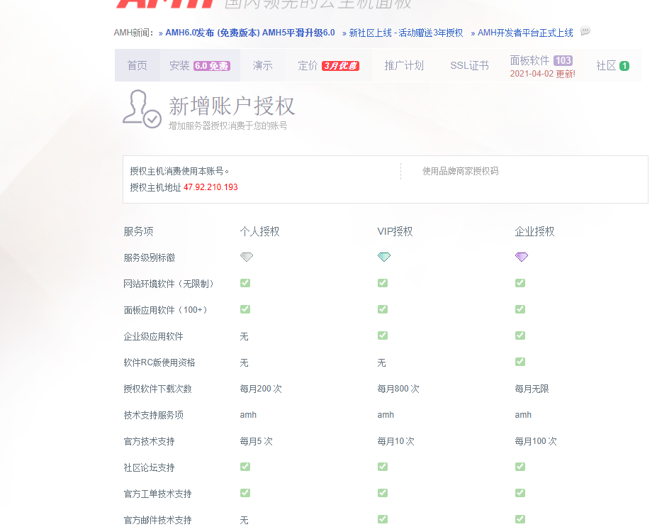 AMH面板 - 国内首款开源主机面板 / 安全稳定轻量纯净 |