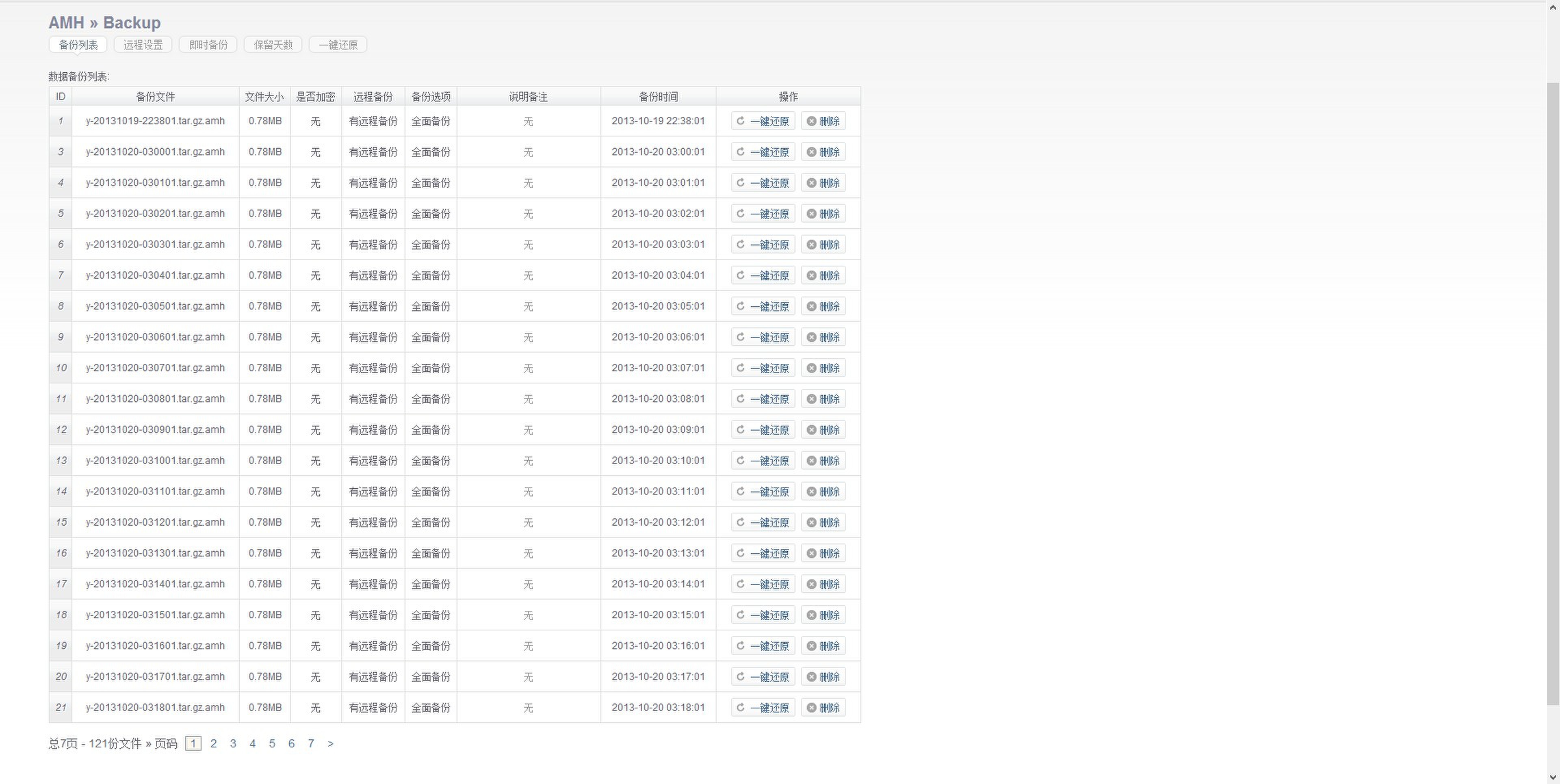 我硬盘都爆好多次了。数据有10G不到。每分钟备一次。60次,彻底硬盘满了。然后网站彻底数据丢失。2次。差点哭了我。一连两天都在恢复网站。奔溃了都。
