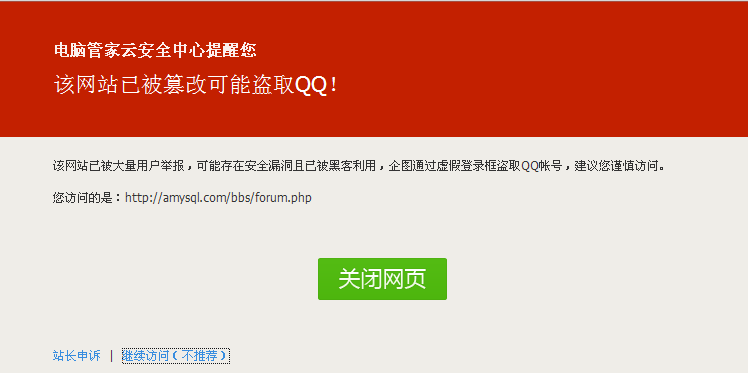 论坛被腾讯的电脑管家拦截了是什么情况?