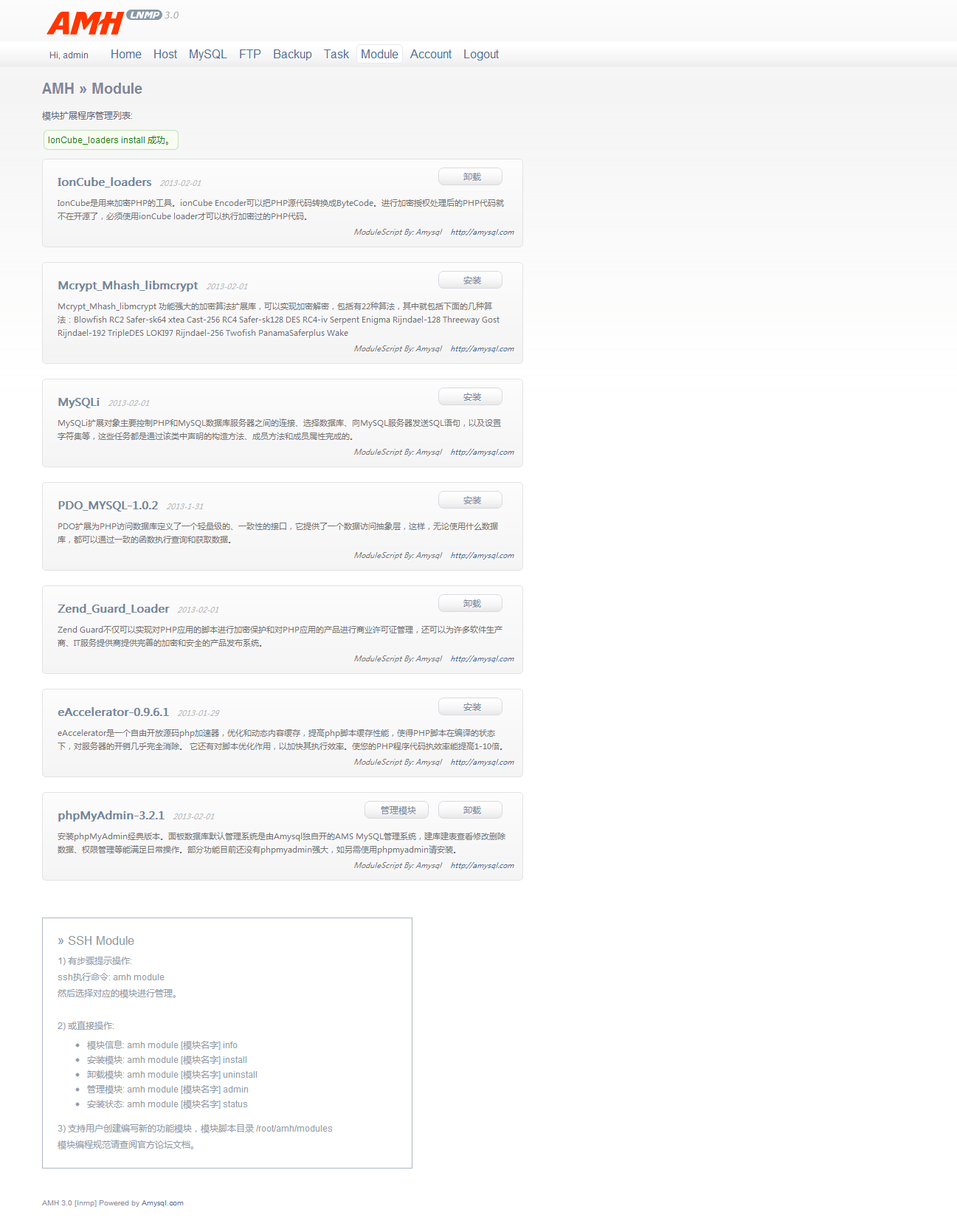 LNMP面板 - AMH3.0 模块功能