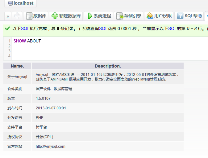 AMH 控制面板,想导入SQL脚本,数据库里面,没有导入选项