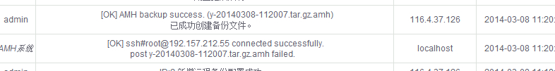 我一个阿里云,一个美国VPS。 子啊阿里云主机里面安装AMH和wordpress,但是发现无法通过SSH备份到美国VPS。 截图: ![]() 我的环境:阿里云ubuntu 12.04 x64,1G内存,AMH4.2 再贴个截图: QQ截图20140308131857.jpg
