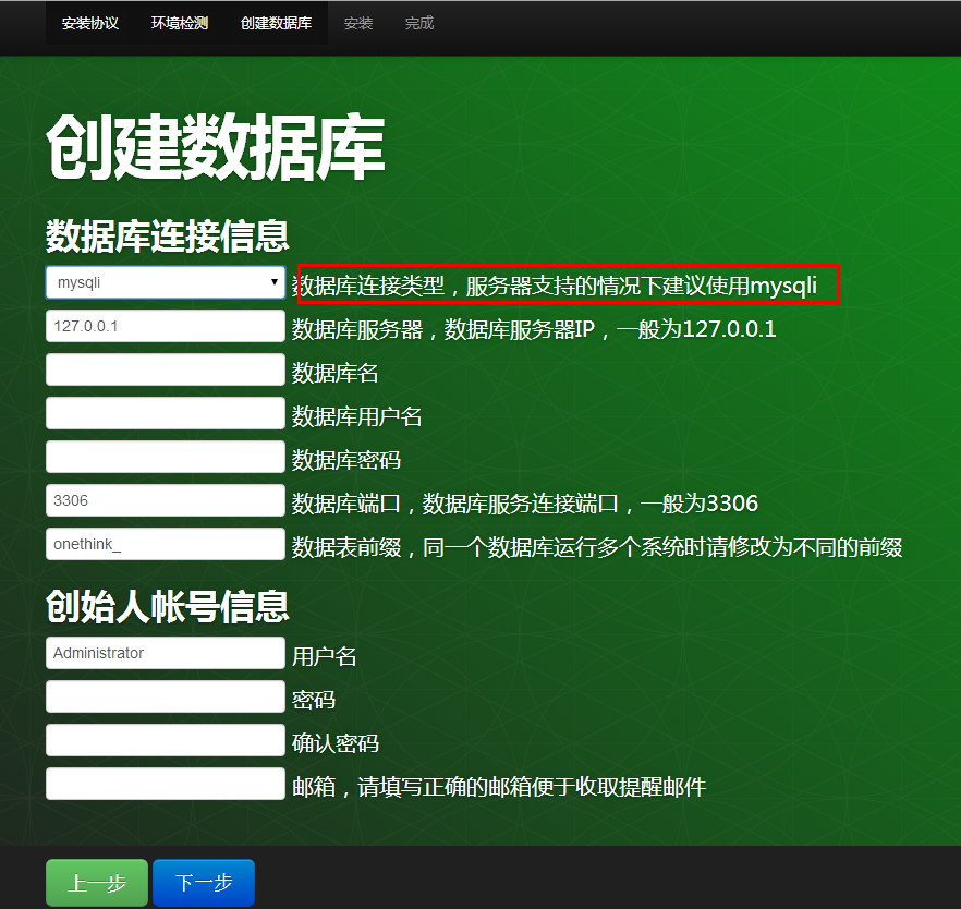 RT,尝试安装OneThink在填写数据信息后下一步出现404,多次尝试仍旧,请问该怎么搞? 另外求问OT的数据库链接类型里有个mysqli和mysql两个选择,这个mysqli是啥意思,两种都尝试仍然404 ![]() ![]() OT官网:http://www.onethink.cn/index/index.html 2014年4月15日 17:06:55 更新:程序正常安装,出现404可能是程序本身bug,但还是要询问mysqli是个啥东东