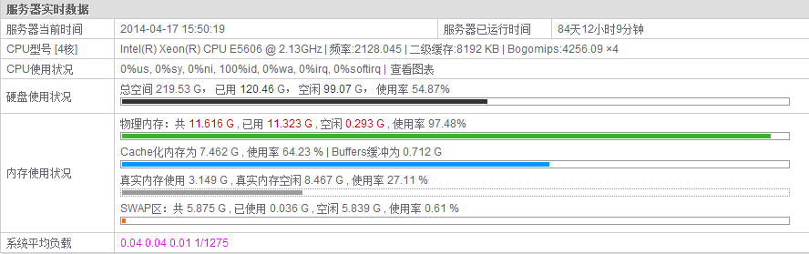 AMH 面板内存占用与雅黑PHP探针显示得不一样