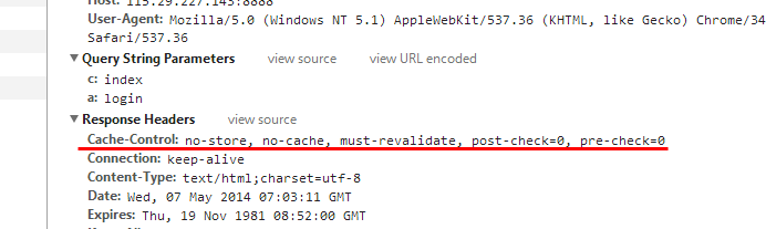 php脚本用到Cookie。用session也是,session_start(); 或设置header不缓存,试试。 <?php header("Cache-control:no-cache,no-store"); ?>