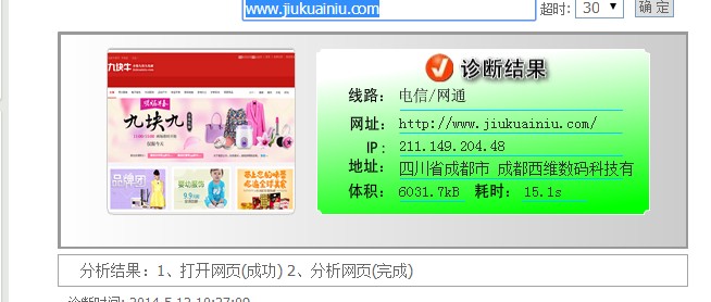 网站打开速度奇慢,如何是好呢??能给些优化的建议吗... http://www.jiukuainiu.com QQ图片20140512103335.jpg