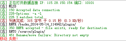 FTP无法覆盖文件 提示这个 [右] RNFR api [右] 350 RNFR accepted - file exists, ready for destination [右] RNTO /api [右] 451 Rename/move failure: Directory not empty 移动 失败!