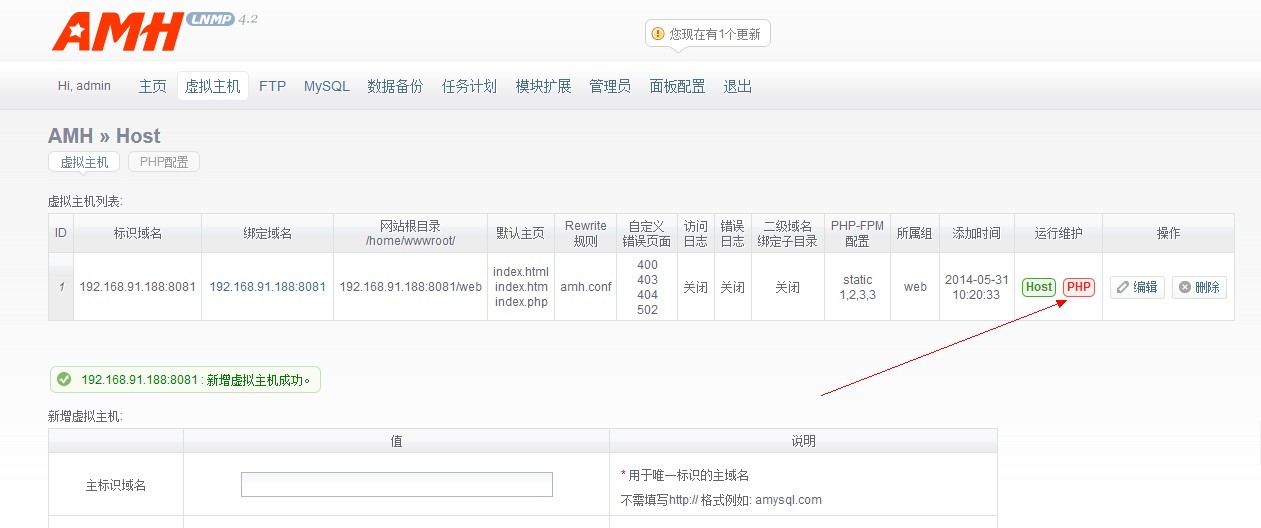 从昨天折腾这个amh,安装了好多遍,添加虚拟主机后,php显示已停止,安装过程没有毛病,