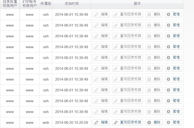 在ssh中添加的账号面板无法管理。只能到ssh中管理。ssh等级高于web