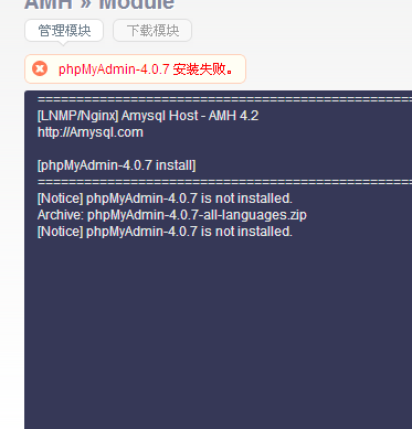 新机器,新安装AMH4.2。话说怎么安装phpmyadmin安装不成功呀咋回事! ![]() ![]() 我然后就试了两个版本 结果都不行,现在面板上出现了两个这个玩意 ![]() 点击都是“No input file specified.”请问怎么删除掉,还怎样安装才能成功!