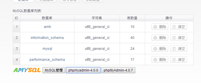 下面按钮是卸载模块时会删除掉。 或执行: sed -i "/phpmyadmin-4.0.0/d" /home/wwwroot/index/web/View/mysql.php; sed -i "/phpMyAdmin-4.0.7/d" /home/wwwroot/index/web/View/mysql.php;