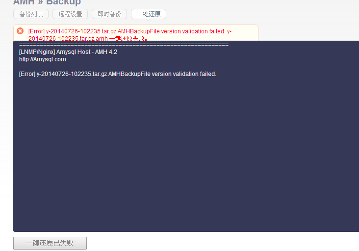 假如原备份的主机和当前主机不是同一台,建议回原主机先看看。也可以尝试重新备份一次。 个人建议是如果数据量大的,其实不应该用面板的备份功能。保障性太低了。 如果原备份主机已经不存在了,那只能是把.amh文件手动改为例如.tar格式,直接在ssh中解压出来看网站数据还在不在。手动创建站点,再使用手动移动目录方式重新移到对应的站点目录里,站点该设置的重新设置一下。