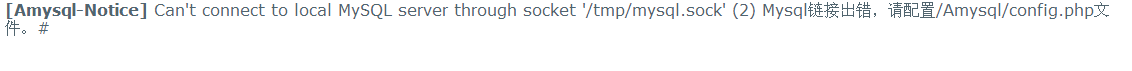 [Amysql-Notice] Can't connect to local MySQL server through socket '/tmp/mysql.sock' (2) Mysql链接出错,请配置/Amysql/config.php文件。#