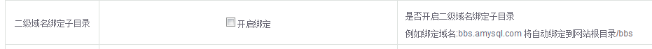 强烈建议加上二级域名绑定根目录下指定目录的功能,做新闻站要把很多子栏目的链接改为二级域名,而且现在做手机站也都是用的二级域名,手机站的文件也都在根目录下的子目录下。用ssh绑定太麻烦了,也容易误操作。 支持 原来的二级域名泛解析到子目录上,经常会出错,会有绑定不上去的情况,而且需要和目录名称对应。而且很多时候二级域名的目录不一定是二级目录,也有可能是根目录下的三级目录或者四级目录。 支持 之前用wdcp就有这个功能,感觉很方便,个人觉得加上这个功能应该不难吧,也很实用。