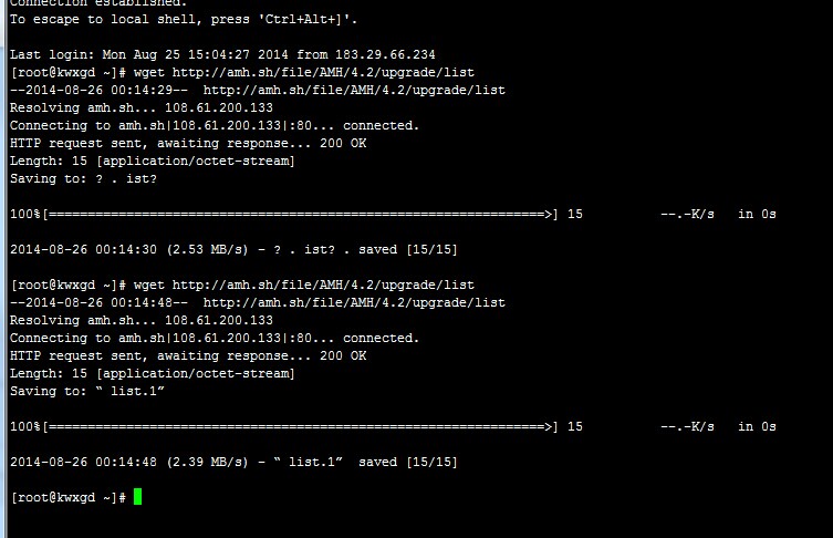 网络问题吗? wget http://amh.sh/file/AMH/4.2/upgrade/list 看能否下载。