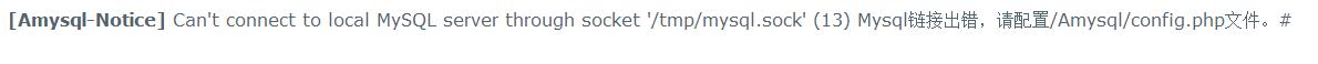 重启mysql成功了,但是访问控制面板还是报之前那个错 [Amysql-Notice] Can't connect to local MySQL server through socket '/tmp/mysql.sock' (13) Mysql链接出错,请配置/Amysql/config.php文件。#
