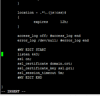 不知道是方法不对还是什么问题 已把证书,私钥放在vhost目录 ssl配置部分如下: ![]() 配置完后,重载nginx,https仍然打不开,不过https打不开就算了,http也访问不了= =请大家帮忙看看= =